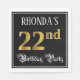 Cette serviette en papier ornée et opulente à thème d'anniversaire comporte un nom personnalisé et le message "fête du 22e anniversaire". Le grand numéro "22e" a un motif de coloriage d'inspiration or imitation/fausse, et les mots "fête d'anniversaire" sont dans un texte de style script sophistiqué. L'arrière - plan est coloré en noir par défaut (bien qu'il puisse être customisé). Des serviettes en papier élégantes et sophistiquées comme celle-ci pourraient être utilisées lors d’une fête d’anniversaire pour célébrer le vingt-deuxième anniversaire de quelqu’un. [~Z0000565]