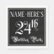 Cette conception sophistiquée et élaborée de serviette d'anniversaire comporte un nom personnalisable et le message "fête du 24e anniversaire". Le grand numéro "24th" et les mots "Birthday Party" sont dans un texte opulent de style script. L'arrière - plan est coloré en noir par défaut (bien qu'il puisse être customisé). Des serviettes en papier de cette nature peuvent être utilisées lors d’une fête d’anniversaire ou d’une célébration pour célébrer le vingt-quatrième anniversaire de quelqu’un. [~Z0000563]