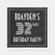 Ce design élégant de papier de fête/fête de trente-deuxième anniversaire comporte un nom personnalisé, un look art déco complexe inspiré du numéro "32e", le message "FÊTE D'ANNIVERSAIRE !", et un motif frontalier composé de lignes. Il a un arrière - plan de couleur noire par défaut, mais il peut être customisé à une couleur différente, si désiré. Des serviettes en papier sur le thème de l’anniversaire comme celles-ci pourraient être utilisées lors d’une fête d’anniversaire célébrant le trente-deuxième anniversaire de quelqu’un. [~Z0000616]