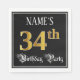 Cette serviette en papier à thème d'anniversaire, opulente et sophistiquée, porte un nom personnalisé et le message "34th Birthday Party". Le grand numéro "34th" a un motif de coloriage d'inspiration or imitation/fausse, et les mots "Birthday Party" sont dans un texte de style script luxueux. L'arrière - plan est coloré en noir par défaut (bien qu'il puisse être customisé). Des serviettes en papier élégantes et luxueuses comme celle-ci pourraient être utiles lors d’une célébration d’anniversaire pour célébrer le 34e anniversaire de quelqu’un. [~Z0000565]
