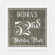 Ce design luxueux et soigné de serviette en papier à thème d'anniversaire comporte un nom modifiable et le message "52e anniversaire fête". Le grand numéro "52e" et les mots "fête d'anniversaire" sont dans un texte orné de style script, et l'arrière - plan a une imitation/faux motif inspiré des grains de bois. Des serviettes en papier de cette nature peuvent être utilisées lors d’une fête d’anniversaire ou d’une célébration pour célébrer le 52e anniversaire de quelqu’un. [~Z0000564]