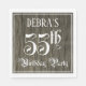 Cette conception élaborée et ornée de la soirée d'anniversaire sur le thème de la serviette en papier comprend un nom personnalisé et le message "55e anniversaire fête". Le grand numéro "55e" et les mots "fête d'anniversaire" sont dans un texte élégant de style script, et l'arrière - plan a une imitation/faux motif d'inspiration boisée. Des serviettes en papier élégantes et sophistiquées comme celle-ci pourraient être utilisées lors d’une fête d’anniversaire ou d’une fête célébrant le cinquantenaire de quelqu’un. [~Z0000564]