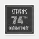 Ce design design design et des années 1920/1930 inspiré soixante-quatorze ans papier de célébration design comprend un nom personnalisé, un look art déco complexe inspiré numéro "74th", le message "BIRTHDAY PARTY!", et une frontière multi-lignes. Par défaut, il dispose d'un arrière - plan de couleur noire, mais il peut être customisé à une couleur différente, si vous le souhaitez. Des serviettes en papier comme celles-ci peuvent être utilisées pour célébrer le 74e anniversaire de quelqu’un. [~Z0000616]