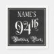Cette conception sophistiquée et sophistiquée de serviette en papier à thème d'anniversaire comporte un nom modifiable et le message "94th Birthday Party". Le grand numéro "94th" et les mots "Birthday Party" sont dans un texte de style script luxueux, et l'arrière - plan est coloré noir par défaut (bien qu'il puisse être customisé). Des serviettes en papier aussi sophistiquées et opulentes pourraient être utiles lors d’une célébration d’anniversaire ou d’une fête pour célébrer le 94e anniversaire de quelqu’un. [~Z0000563]