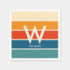 Serviettes de fête personnelles tendance avec des rayures larges de couleurs rétro. Grand monogramme centré et nom associé. Typographie minimaliste propre et simple. Entièrement personnalisable.