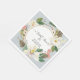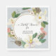 "Serviettes en papier à Fête des mariées bleu-bleu-bleu-bleu-bleu-blanc Magnolia Aquarelle." Bordure bleu pâle et pâle avec fleurs de magnolia blanches mélangées à des fleurs sauvages rose pastel, des roses, une couronne de branches brindilles et une verdure verte et brune. Une mince bordure en parties scintillant dorée met en surbrillance le cadre rond qui contient le texte de typographie de police de calligraphie écriture manuscrite de script. Art peint par Audrey Jeanne Roberts, artiste et designer de renommée internationale, copyright.