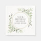 Serviettes en papier feuillage de eucalyptus doux moderne pour anniversaire avec des feuilles délicates aquarelle. Ces serviettes botaniques chic peuvent être personnalisées avec votre propre message dans un texte élégant stylisé. Conçu par Thisisnotme©