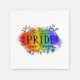 Cette oeuvre colorée présente le mot Pride sur une aquarelle douce.