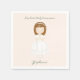 Communion Girl Prier Cette belle et douce première communion conception d'une petite brune priant paisiblement sur sa journée spéciale est sur une pêche pâle et arrière - plan sage. Accentué par un cadre feuille fleur sauvage. Chérissez les grands souvenirs de la première communion sainte de votre enfant avec ce magnifique design. Consultez les accessoires, la papeterie et les cadeaux de communion de la Première Sainte Communion correspondants.