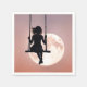 Silhouette fille sur une balançoire avec une pleine lune dans un ciel rose.