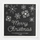 Les flocons de neige noirs et blancs serviettes de table de la fête de Noël avec une mignonne invitation fantaisiste pour une fête de Noël festive.