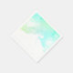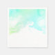 Serviettes en papier avec une bordure abstraite le long du dessus avec des couleurs tourbillonnant vertes et bleues. Un design doux et estival. Une texture de papier aquarelle claire derrière l'image.