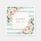 Organisez un brunch, un déjeuner, un dîner ou toute autre célébration spéciale pour Maman avec une belle serviette en papier avec des bouquets de fleurs d'aquarelle de rose pastel et de roses blanches et de la verdure en face d'un arrière - plan rayé blanc et bleu pastel robin. Une disposition de texte simple et élégante est utilisée dans cette conception que vous pouvez personnaliser si vous le souhaitez. Ces serviettes en papier sont disponibles en 3 tailles différentes : cocktail (voir ici), déjeuner et dîner avec des bords simples ou forgés.