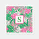 Serviette En Papier Fleur Monogramme rose blanc vert Preppy