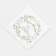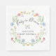 BÉBÉ SPRINKLE | De délicieuses serviettes en papier assorties (assiettes et tasses sont également disponibles) pour votre future mère, qui a un "Baby in Bloom!" Des fleurs sauvages aquarelles dans des tons pastel doux forment une couronne délicate, légère et aérée entourée d'abeilles et de papillons, et la typographie script texte manuscrit et son nom. Art créé et dessiné graphiquement par Audrey Jeanne Roberts, artiste et designer de renommée internationale, copyright.