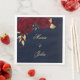 Belles fleurs bordeaux & or feuille bleu marine papier mariage serviette