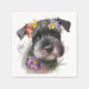 Superbe aquarelle Schnauzer design chiot avec fleurs jaunes, roses et violettes