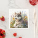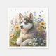Serviette En Papier Fleurs d'aquarelle et chiot sibérien Husky