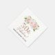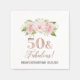 Des serviettes personnalisables pour la fête du 50e anniversaire avec des fleurs d'aquarelle rose pâle et du texte en or rose.
