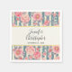 serviettes en papier mariage avec une belle motif avec de jolies fleurs roses disposées sur le dessus une motif rayée composée de rayures bleues et crème. Un cadre rectangle avec une fausse bordure en feuille d'or superposée avec votre texte personnalisé à l'intérieur.