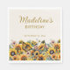 Fleurs de soleil élégantes et papillons femme's anniversaire de fête sur mesure serviettes en papier. Personnalisée avec le nom de l'invitée d'honneur et sa date de fête. Contactez-moi pour obtenir de l'aide sur vos personnalisations ou pour demander des produits Zazzle correspondants ou coordonnés supplémentaires pour votre groupe.