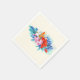 Serviettes en papier avec un bouquet de fleurs tropicales plein de vitalité. Orchidées, hibiscus et feuilles tropicaux. Couleurs rose, turquoise, rouge et bleue.
