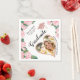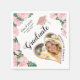 Ces serviettes uniques en papier de fin d'études avec un design floral élégant sont faciles à personnaliser avec la photo du diplômé, son prénom et son nom, l'année de l'événement et le nom de l'école. De belles fleurs roses roses et l'illustration casquette d'une grade sont présentées sur ce design élégant sur un arrière - plan blanc.