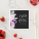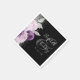 Le bord gauche de ces élégantes serviettes mariages modernes présente un bouquet floral dans les tons violet et lavande, paré de fausse feuille argent et de faux feuillage de parties scintillant et parsemé de fausse parties scintillant argentée. Le texte personnalisable combine les noms du couple en écriture manuscrite gris argenté pâle sur un grand ampersan gris, avec la date en police cuivre sur un arrière - plan noir.