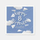 This easy-to-personlize paper airplanes themed paper napkin for a boy's or girl's birthday party features various illustrated folded white paper airplanes with whimsical curvy dashed-line flight trails amongst puffy white clouds on a customizable blue background - personalize with your party details - by katz_d_zynes