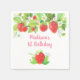 Ces serviettes d'anniversaire mignonnes présentent des fraises aquarelles, de la verdure et des fleurs.