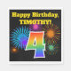 Ce design amusant et dynamique de serviette en papier présente un motif coloré inspiré par les feux d'artifice, ainsi que le numéro "4", avec un motif multicolore en dégradé d'inspiration arc-en-ciel, sur un arrière - plan de couleur noire. Il comporte également un nom et un message d'événement personnalisables. Des serviettes en papier comme celle-ci pourraient être utilisées lors d’une fête organisée pour célébrer le quatrième anniversaire de quelqu’un. [~Z0000326]
