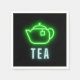 Le design de la serviette de soirée papier amusant comprend une théière verte néon avec du texte néon "Thé" sur l'arrière - plan noir