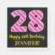 Cette conception amusante de serviette en papier sur le thème de l'anniversaire comporte un grand numéro "28" avec un motif rose foncé et rose clair rayures, avec le message "Joyeux 28e anniversaire", et un nom personnalisé. L'arrière - plan est noir de couleur. Des serviettes en papier comme celle-ci, amusantes et modifiables, pourraient être utilisées lors d’une célébration d’anniversaire en l’honneur du 28e anniversaire de quelqu’un. [~Z0000380]