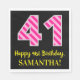 Ce design amusant sur le thème de l'anniversaire de la serviette en papier dispose d'un grand numéro "41", avec un motif de rayures rose clair et rose foncé. Il comporte également le message "Joyeux 41e anniversaire", et un nom modifiable. L'arrière - plan est noir de couleur. Des serviettes en papier sur le thème de l’anniversaire comme celle-ci pourraient être amusantes à utiliser lors d’une fête organisée pour célébrer le 41e anniversaire de quelqu’un. [~Z0000380]