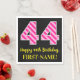 Ce design amusant sur le thème de l'anniversaire de la serviette en papier dispose d'un grand numéro "44", avec un motif de rayures rose foncé et rose clair. Il comporte également le message "Joyeux 44e anniversaire", et un nom personnalisé. L'arrière - plan est noir de couleur. Des serviettes en papier sur le thème de l’anniversaire comme celle-ci pourraient être utilisées lors d’une fête célébrant le 44e anniversaire de quelqu’un. [~Z0000380]