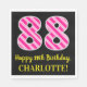 Cette conception amusante de serviette en papier sur le thème de l'anniversaire comporte un grand numéro "88" avec un motif rose clair et rose foncé rayures, avec le message "Happy 88th Birthday,", et un nom personnalisable. L'arrière - plan est noir de couleur. Des serviettes en papier personnalisables et amusantes comme celle-ci pourraient être utilisées lors d’une fête d’anniversaire pour célébrer le 88e anniversaire de quelqu’un. [~Z0000380]