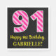 Ce design amusant de serviette en papier sur le thème de l'anniversaire comporte un grand nombre de "91", avec un motif de rayures rose foncé et rose clair. Il comporte également le message "Happy 91st Birthday", ainsi qu'un nom personnalisable. L'arrière - plan est noir de couleur. Des serviettes en papier sur le thème de l'anniversaire comme celle-ci pourraient être amusantes à utiliser lors d'une célébration organisée pour honorer quelqu'un qui célèbre son 91e anniversaire. [~Z0000380]