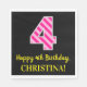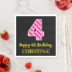 Cette conception amusante de serviette en papier sur le thème de l'anniversaire comporte un grand nombre "4" avec un motif rose foncé et rose clair rayures, avec le message "Joyeux 4e anniversaire", et un nom personnalisé. L'arrière - plan est noir de couleur. Des serviettes en papier sur le thème de l’anniversaire comme celle-ci pourraient être utilisées pour célébrer le quatrième anniversaire de quelqu’un. [~Z0000380]