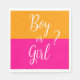 Des serviettes en papier pour garçon ou fille en rose et orange pour un genre révèlent la célébration.