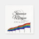 Ces belles serviettes feront de votre réception de mariage quelque chose de spécial. Elles arborent une image de drapeaux gay pride arc-en-ciel. Personnalisez facilement avec vos noms et la date du mariage.