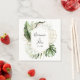 Ces serviettes en papier mariage géométrique doré tropical sont parfaites pour une réception de mariage moderne. Le design est composé d'or aquarelle peint à la main et de feuilles de palmiers verts et de bananes aux fleurs roses entassées dans des bouquets, ornant un cadre géométrique. Faites ces serviettes vous-même en incluant les noms de la mariée, du marié et de la date du mariage. Ces serviettes peuvent compléter une réception de mariage, un dîner de répétition, une fête de fiançailles et plus encore!