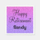 Glam personnalisé Happy Retirement napkin avec une parties scintillant violette à l'ombre étincelle arrière - plan et élégante écriture noire. Vous pouvez facilement ajouter le nom de votre choix et changer la couleur et la police du nom en utilisant l'option personnaliser !
