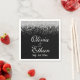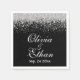 Un design élégant à la serviette avec une saupoudrée de confettis de parties scintillant argentée sur un arrière - plan noir de minuit. Vous pouvez le personnaliser en allant dans le menu personnaliser. Il fait partie d'une belle suite mariage qui comprend un menu, des cartes de numéro de table et de nombreux autres éléments.