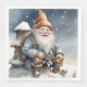 Serviette En Papier Gnome mignonne assis près d'un arbre dans la neige