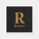 Serviette En Papier Gold Initial/Prénom/Famille Sur Noir
