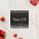Ajoutez votre touche spéciale à cet élégant design de serviette de fête d'anniversaire personnalisée avec des confettis brillants d'or et d'argent sur un arrière - plan noir, typographie de script moderne avec les mots "Happy 50th" et le nom de la fille d'anniversaire.