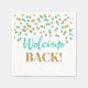 Bienvenue serviettes avec motif confetti Turquoise et Gold.