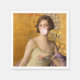 Oeuvre d'art pop d'un remix peinture vintage d'une femme en jaune soufflant une gomme à bulle rose avec arrière - plan motif or.