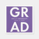 Serviettes de graduation personnalisées avec "Grad" en lettres blanches en gras avec un arrière - plan violet ou couleur de votre choix. Personnalisez les serviettes de la fête de remise des diplômes en ajoutant le nom du diplômé et l'année de remise des diplômes. Les serviettes de remise de diplômes personnalisées sont parfaites pour les fêtes de fin d'études secondaires et collégiales.