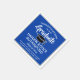 Ajoutez une touche élégante et personnalisée aux décorations de la fête de fin d'études supérieures ou secondaires avec ces serviettes en papier bleu et blanc royal personnalisées. Tout le texte est simple à customiser. Le design comprend un arrière - plan bleu, un casquette en mortier noir, une typographie moderne élégante et une calligraphie manuscrite. Félicitations au diplômé !